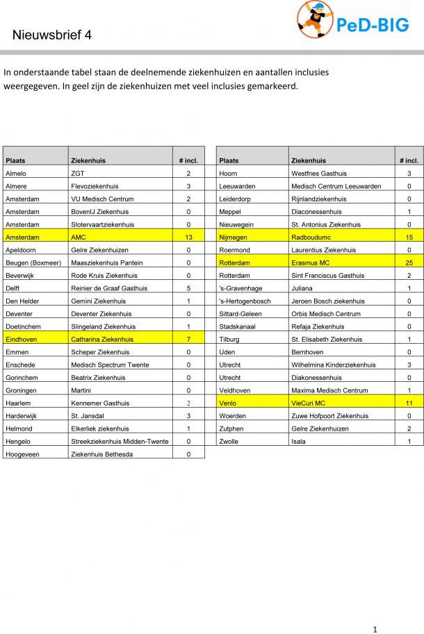 Inmiddels nemen al 31 ziekenhuizen deel aan het PeD-BIG netwerk. Er zijn de afgelopen 4 maanden meer dan 40 kinderen in de studie geincludeerd.